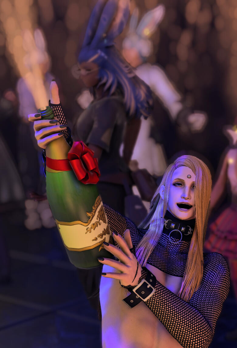 But for those who crave a bit more fizz... indulge in our Champagne Shower for 250k gil. Watch as our staff surrounds your chosen VIP in a shimmering circle of champagne — captured in a personalized photo to immortalize the moment.